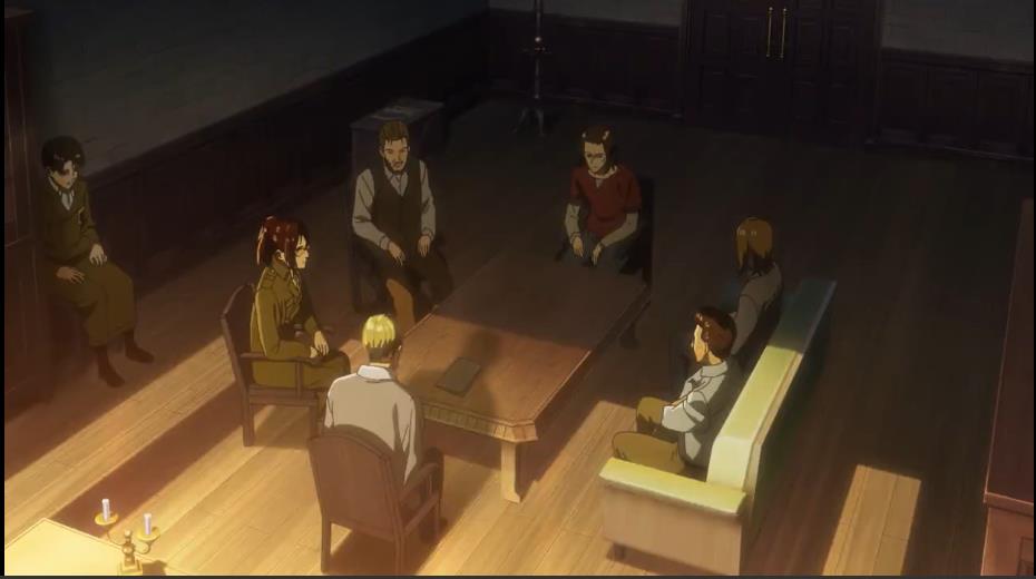 画面一转,镜头给到了调查兵团的各位队长。他们正在讨论萦绕在格里沙·耶格尔身上的谜团,为何格里沙·耶格尔与莱纳、胡佛同样拥有巨人之力,他们的行为却截然不同?墙外的真相到底是什么?初代王消除了什么记忆?而这一切,都必须找到格里沙放在地下室里面的笔记之后才能揭晓答案。