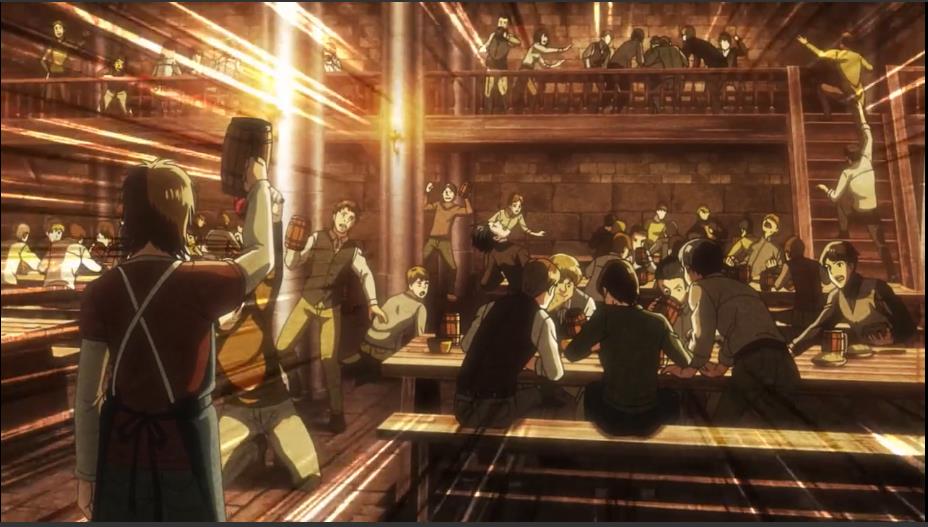 两人殴打在一起,司空见惯的大家并没有起来劝架。最后,还是利威尔出现,一人赏了一拳,解决了争端。