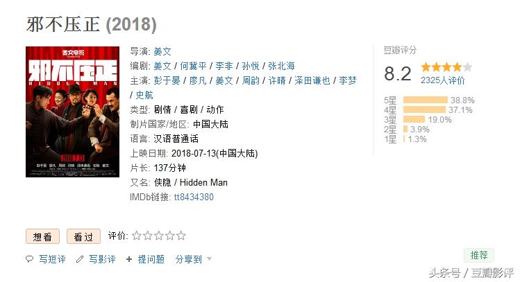 《邪不压正》首日评分出炉,豆瓣8.2,一大波评论正在赶来的路上