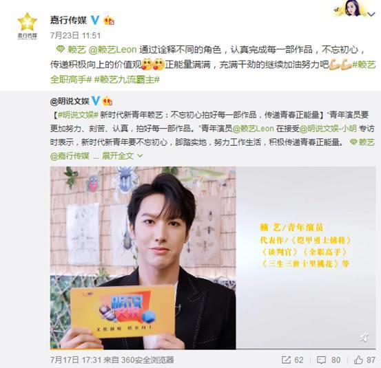 节目上线后,粉丝们积极转发,表示会一直支持积极向上的赖艺,脚踏实地的工作,为梦想而飞,努力争做新时代新青年。