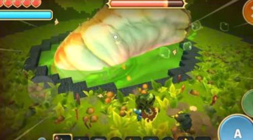 当我们进入蠕虫坑以后,就看到了一个类似于腾空的岛屿,周边是一个绿色液体的湖泊,千万别试图进入和这个湖泊,进去就会失去生命的。我们随着石阶往上走,看到一个长得像竹笋的东西,然后攻击它,当它被打碎之后蠕虫巨兽就会从池中出来,这是大蠕虫巨兽第一个技巧。