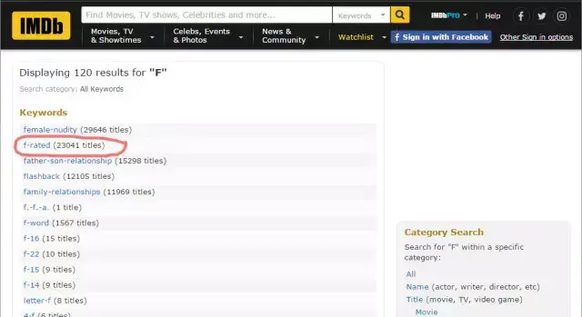 美国因特网电影数据库也是把“F-Rated”作为区分电影等级的一项搜索关键词