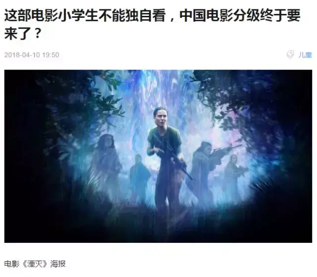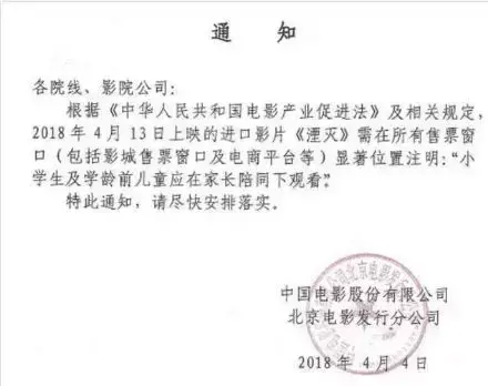 细心如小编的网友们也发现,4月13日上映的《湮灭》中,要求小孩要在家长陪同下观看。