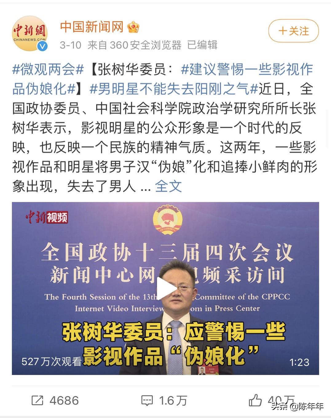 建议警惕一些影视作品伪娘化,男明星不能失去阳刚之气。