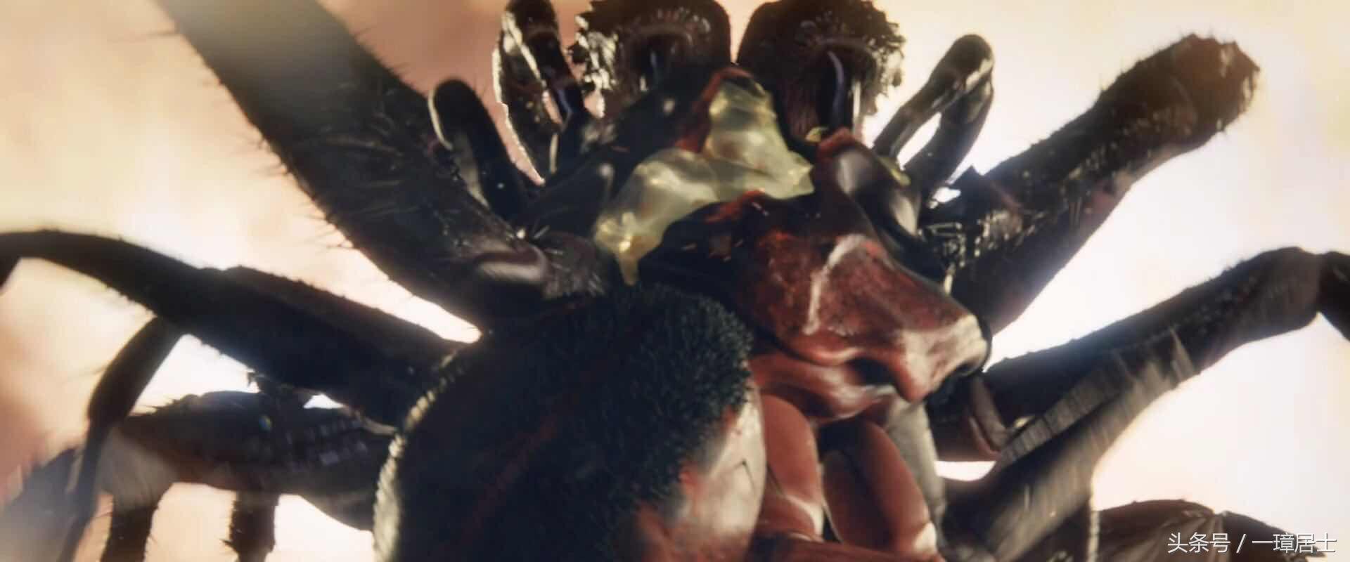 蜘蛛的这个特点并不是最让我惊讶的,令我瞠目结舌的是这只蜘蛛心理变态。蜘蛛能思考是不是已经够不可思议了?这一只蜘蛛老大不光能思考,而且还患上了心理疾病。他在最后关头,面对人类的逃走,自己即将到来的死亡,选择的不是追赶或者逃生,而是将自己的副手拉过来,将其分尸。这伙人跑了跟蜘蛛的副手有什么关系,他自己那么大个看人家跑了不追,拿自己的副手出气,你说它是不是心理变态?