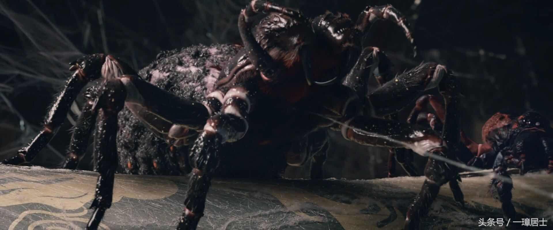 第五,这部电影的大反派不是坏老板梅森,也不是秦始皇或者炼药师,而是一只巨大的蜘蛛。蜘蛛老大体型如同两个篮球那么大,个头大倒是可以接受,只是这蜘蛛丝是从嘴里吐出来的。科普一下,蜘蛛要么不吐丝,要么从腹部吐。他的那些蜘蛛小弟都是从屁股吐丝,当然也有可能作为老大要有些不一样的地方。