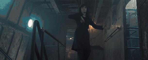 她单枪匹马,穿着窄窄的西装裙,动作干脆利落,稳、准、狠,不愧为好莱坞新一代动作女明星。