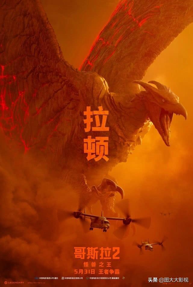 拉顿:休眠墨西哥火山之中,可以在火山中生存,高49米,翼展266米,体重3.9万吨,飞行速度极快,产生的超音速声爆可以直接摧毁地面建筑和生物,而且非常灵活,能用爪子抓住战斗机。技能有超音速声爆,也可以从口中喷射火焰,电影中没有展现这个技能,拉顿通过旋转自己来击落战机的战斗技巧很是高明!