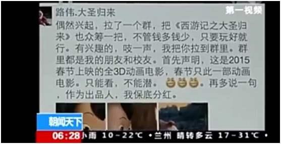 当年《大圣归来》确实也在朋友圈中众筹了一把