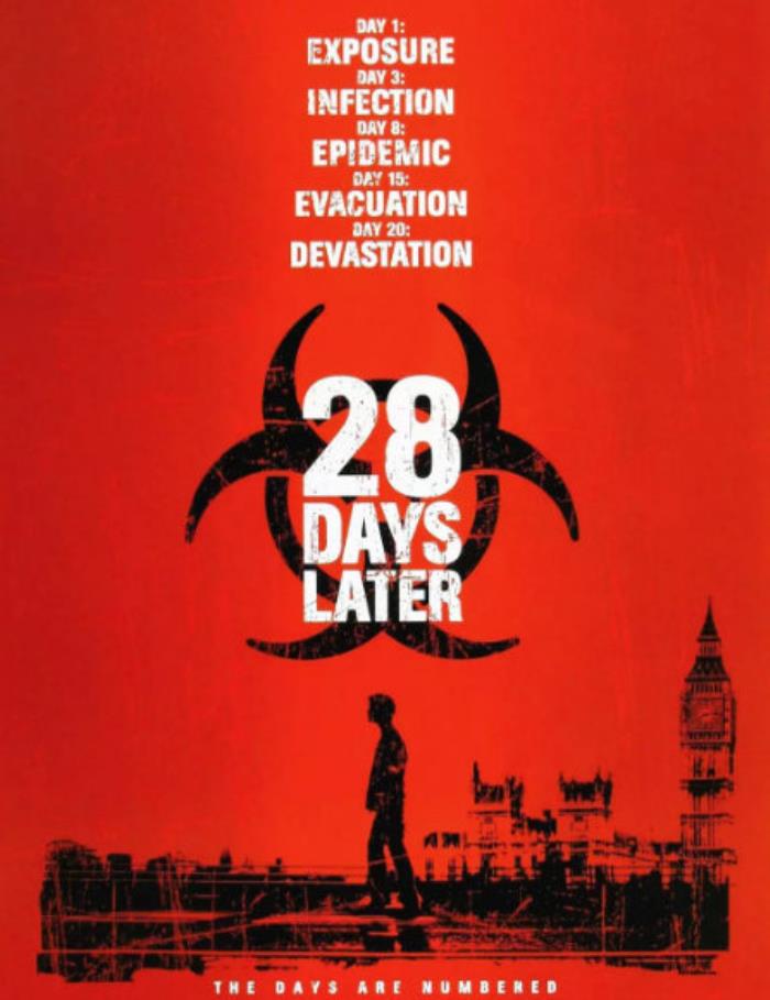 反套路丧尸片,当人类陷入暴怒情绪后已与病毒感染者别无二致,犹如野兽般丧失理智与人性。病毒让人们自相残杀,影片却暗示着自相残杀在人类发展历程中从始至终地延续,正像一代又一代的血脉遗传里无法被消灭与割除的人性病毒,早已深深印刻于基因之中。剑桥科研小组发现一种可以令传染者处于永久杀人状态的病毒,这种病毒传染速度极快,且无法抑止。动物保护组织成员不慎释放了实验室中一批携带该病毒的大猩猩后,繁华的伦敦于短短28天变成一座死城。