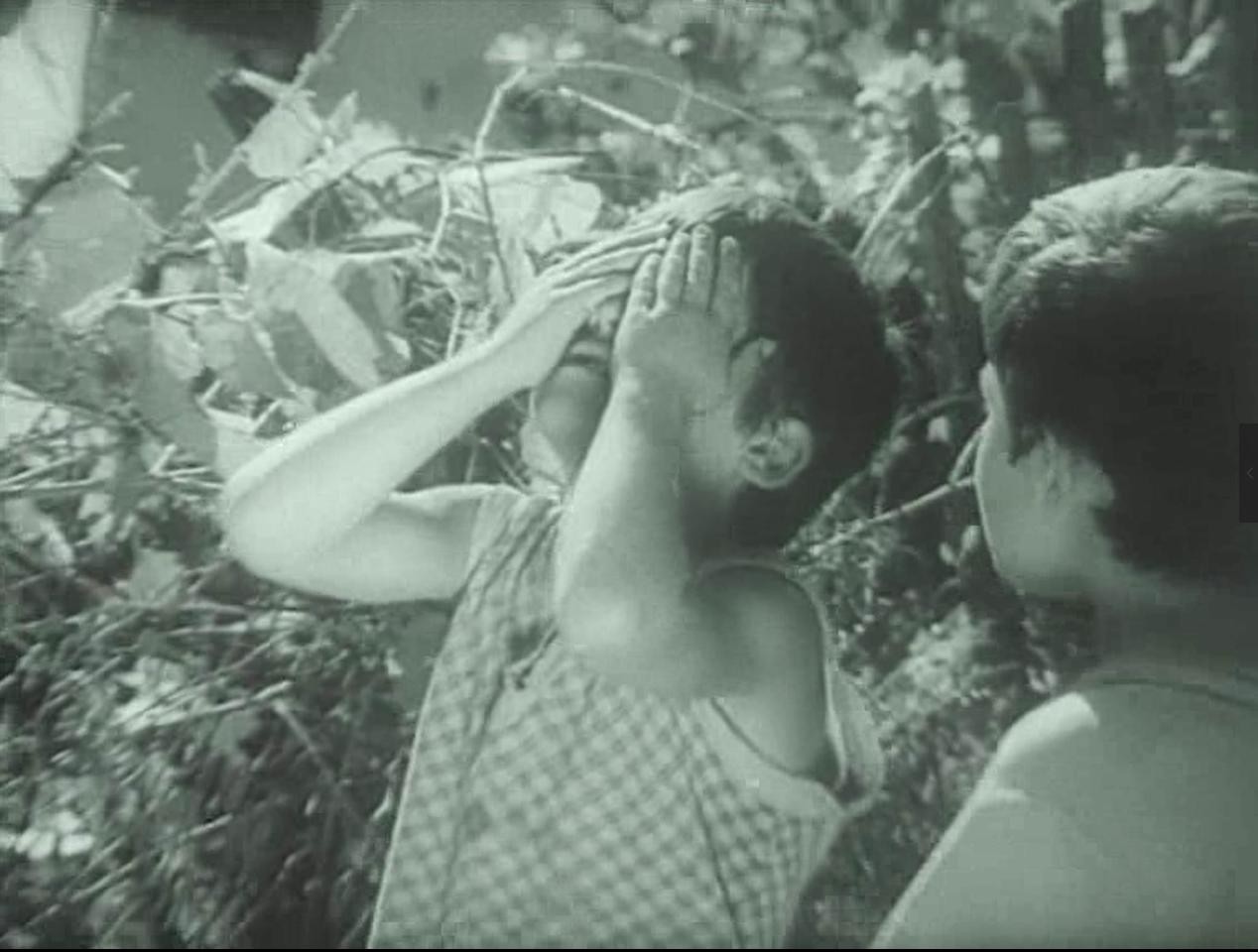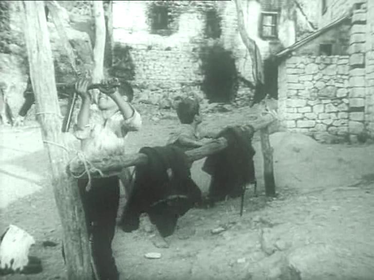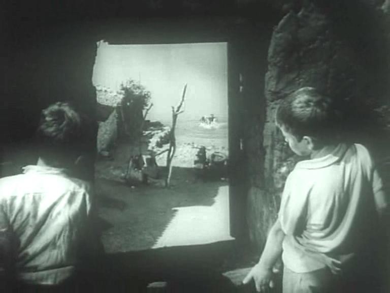 另一个与古里过从甚密、经常在一起的比罗,热衷于制造一把以假乱真的枪支,他的父亲是一个养牛的专业户——笔者只能这么称呼他,也许这样的家庭里培养出的孩子身上有一股不甘罢休的牛劲吧,所以,这个比罗一门心思想打造一把可以打鬼子的真枪,而且他在电影里还真的成功了,用这把枪,可以发射子弹。镜头里,展现了弹道飞向空中,拖出颇为壮丽的火舌彗尾,孩子们称这种景象是“信号弹”,显然,电影镜头在这里运用了一点超现实主义的手段,把孩子们对枪支的迷恋,用一种超现实的壮丽景象呈现在镜头里,这与《乔乔的异想世界》一样,带有相似的超现实味道。