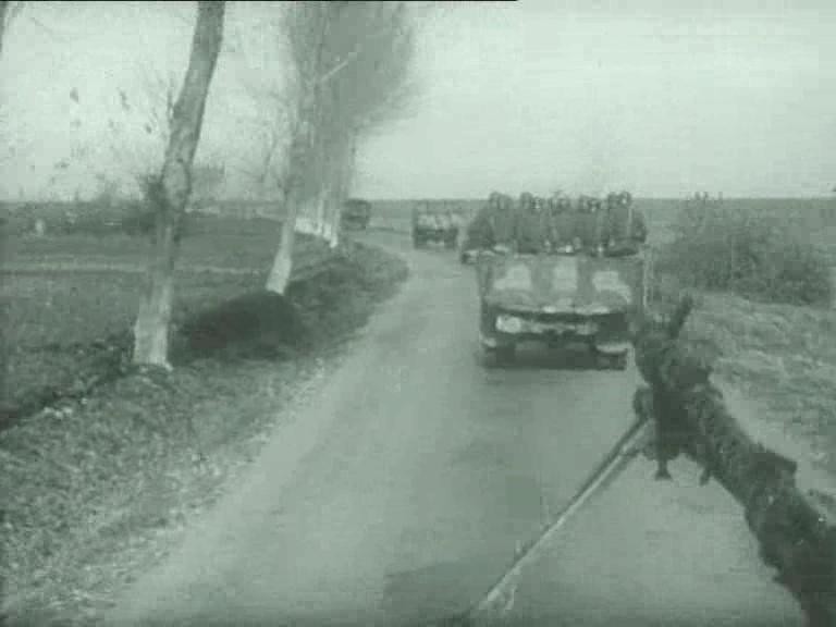 但注意一下,当少年们拿走了敌人的武器之后,电影也意识到这一情节,并不足以强调出少年的英雄行为,所以,当两个少年回去的路上,还遭遇到了一起游击队袭击敌军官的暗杀行动,这样,电影里很快把少年的行动,接上了游击队的更为激烈的战斗行动,使得少年们所作所为,融入到游击队抗暴行为中的一部分。