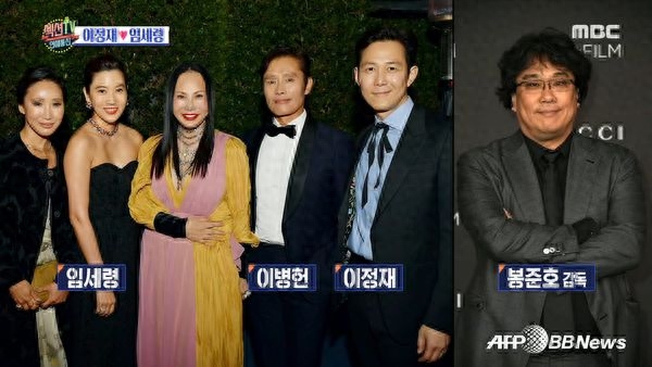 李政宰戏外有稳定交往的女友林世玲(左二),但女方身份特殊,他很少在公开场合提到这段感情。(图/翻摄自MBC)
