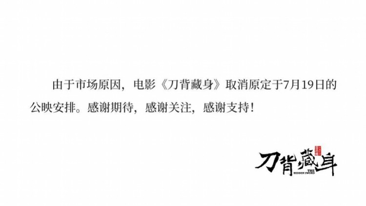 第4部电影告别暑期档,《刀背藏身》官宣“由于市场原因”撤档