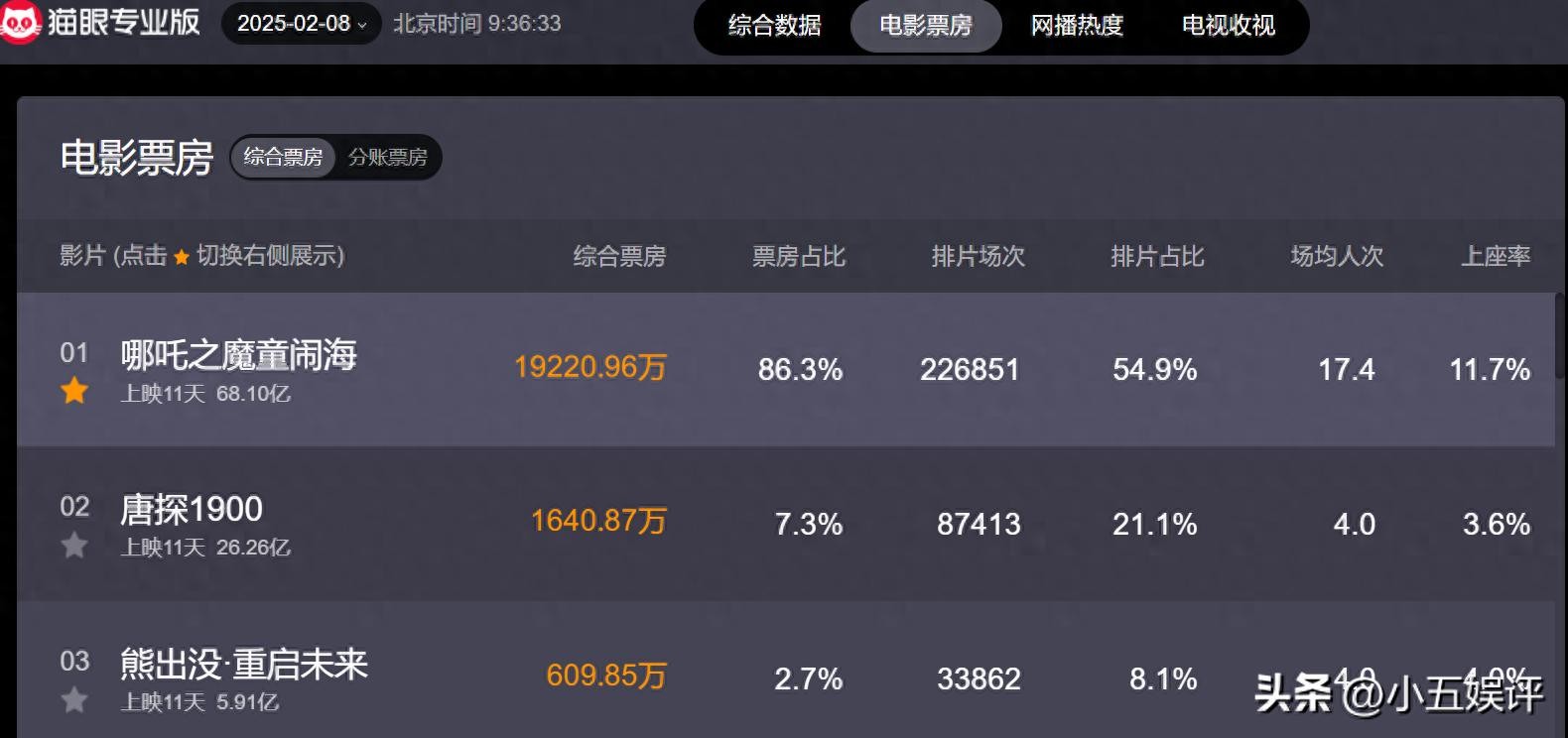 截至 2 月 8日09点36分,《哪吒2》票房 达到68 亿,破100亿不在话下!