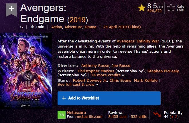 18.《复仇者联盟4:终局之战》Avengers: Endgame