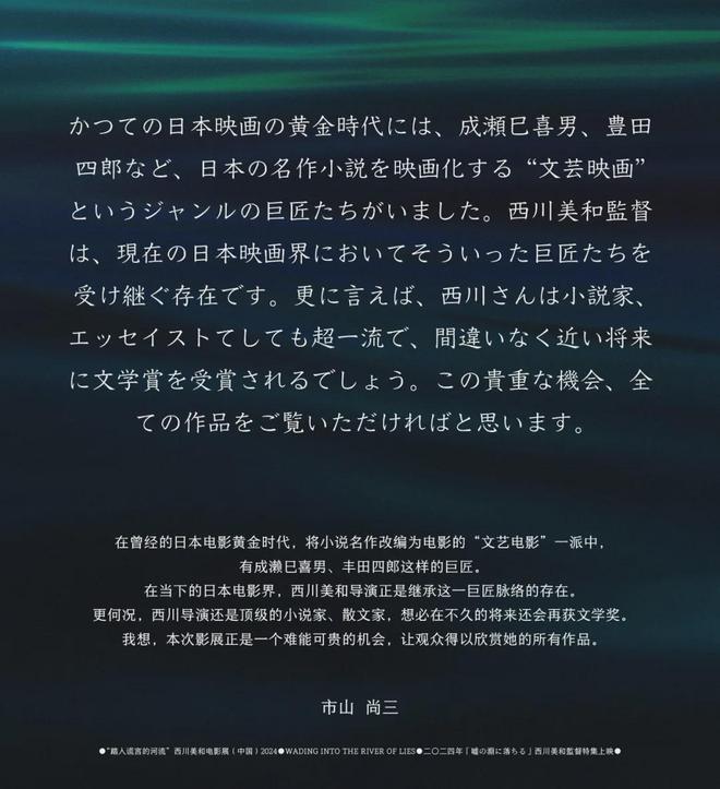 为了这次西川美和电影展,导演本人特别撰写了寄语。