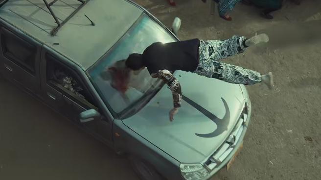 一开场,不知道为啥一辆车横冲直撞进村子,这人眼看着车撞过来,硬是一步都没动,车还没挨到人,整个人直接飞起来了。