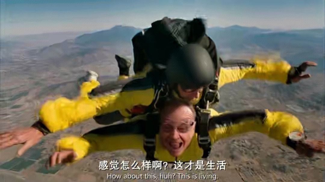 第一项遗愿就是去完成高空跳伞,虽然有所犹豫,但还是被推了下去。