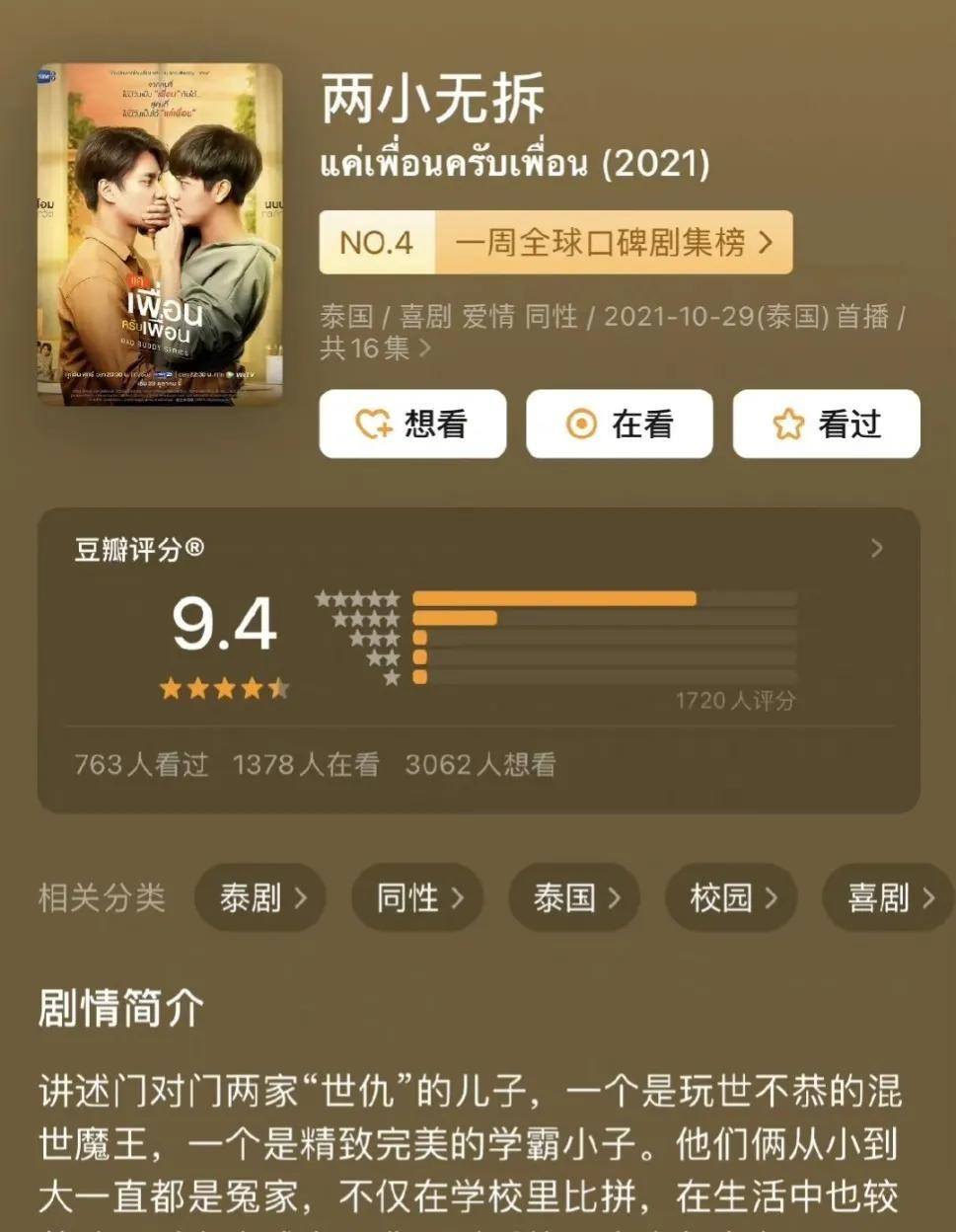 《两小无拆》又叫《是朋友还是男友》是一部泰国同性恋剧,由南农和陈炳林出演。