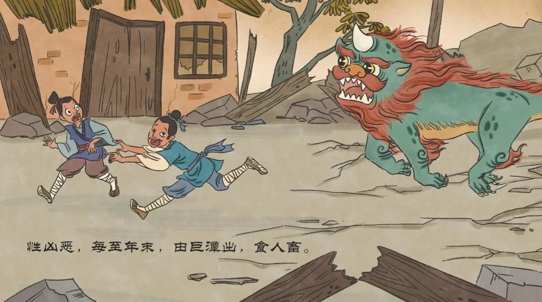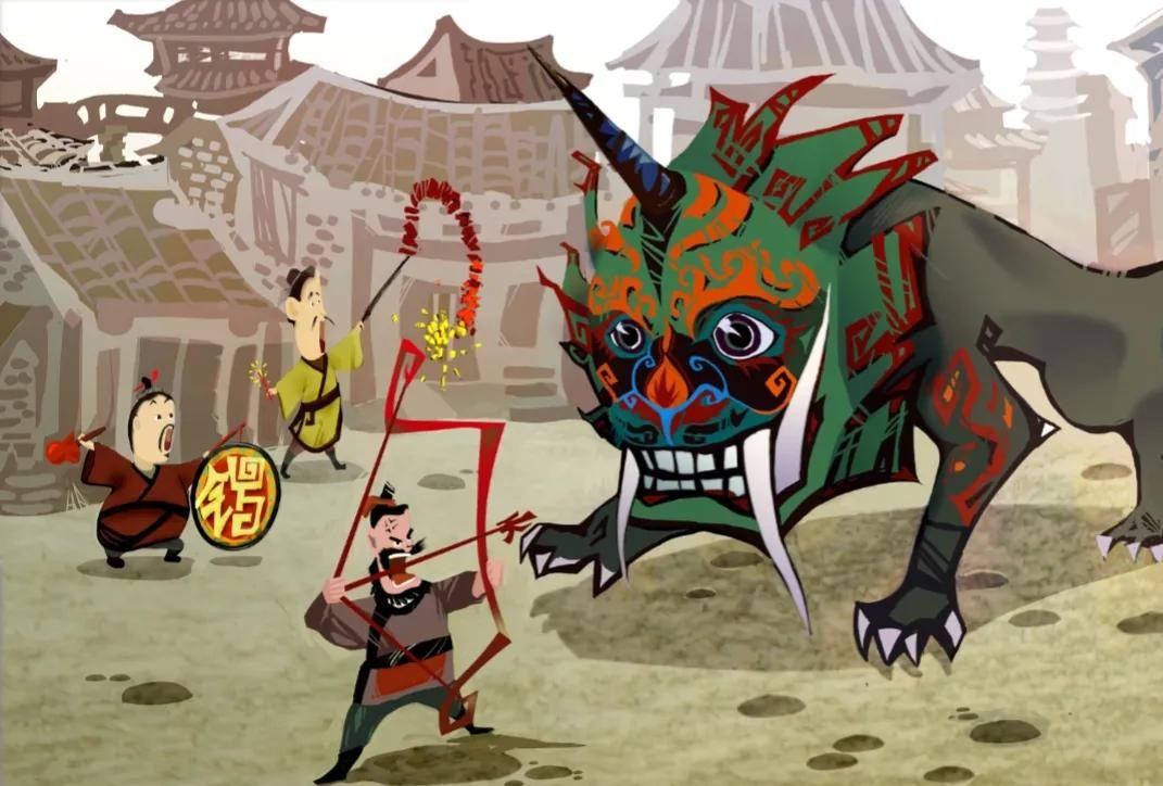 在很久很久以前,有一个神秘而古老的村庄,每年农历新年前夕,都会遭受一只凶猛的怪兽的袭击。这只怪兽名叫“年兽”,它体型巨大,形貌可怖,长着尖锐的獠牙和狰狞的面容。