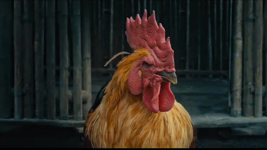 骗取了山民们的信任后,他们在一个老者家休息,没一会儿就听到高亢的雄鸡鸣叫,那老者的儿子正从鸡笼中擒了一只大公鸡。