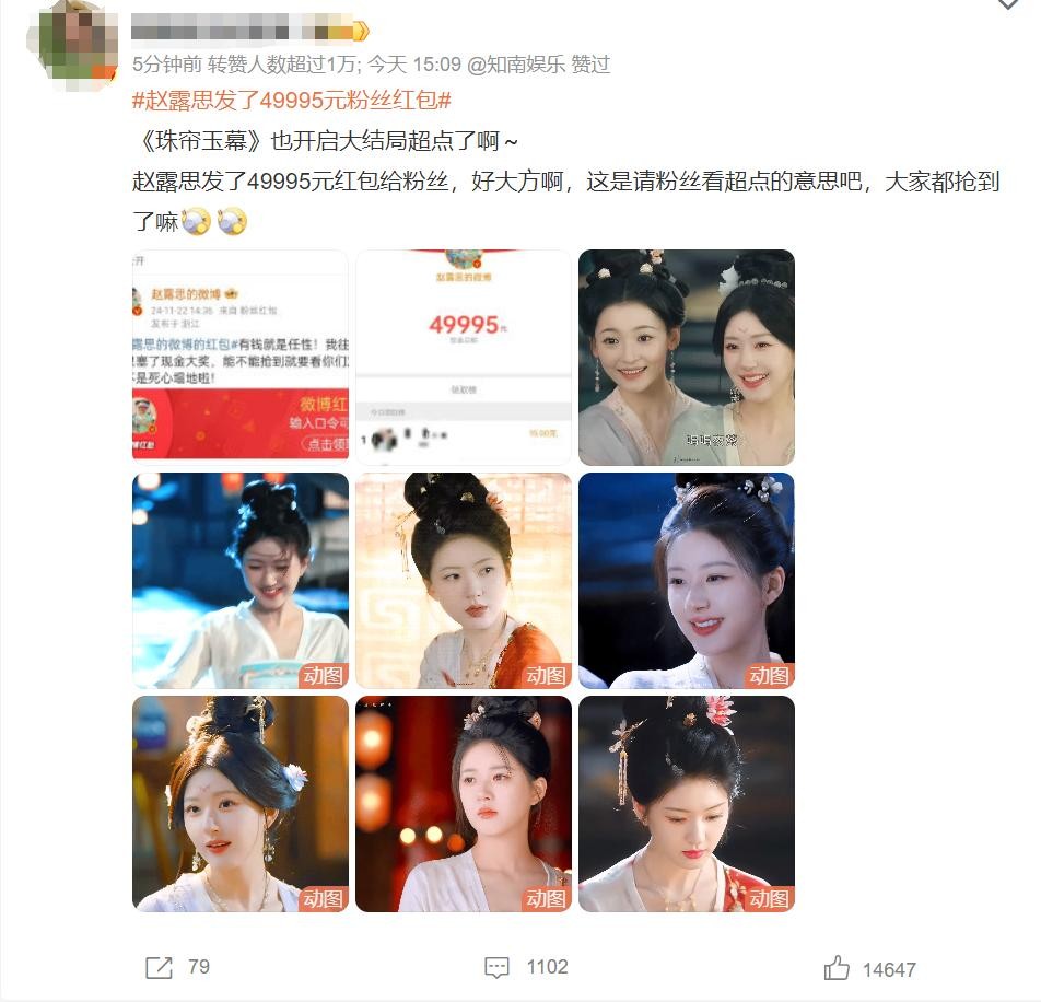 《珠帘玉幕》结局超点,赵露思49995元红包引爆热搜!