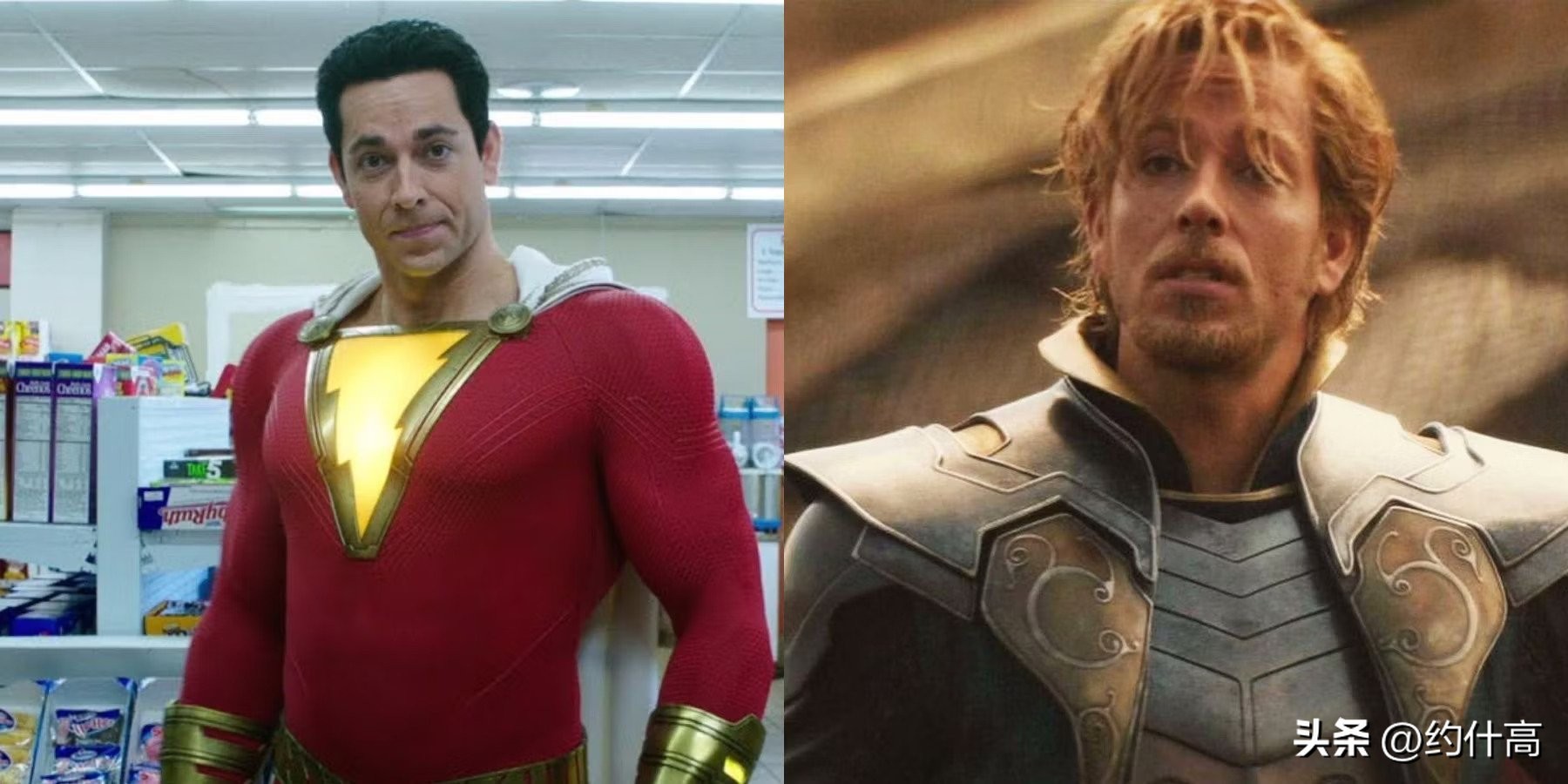 个人觉得,与“沙赞”中的“油腻”形象相比,“雷神”里的扎克瑞·莱维的造型不论从面部形象还是装扮上那种略微“颓废”的感觉比“沙赞”的形象更帅气。