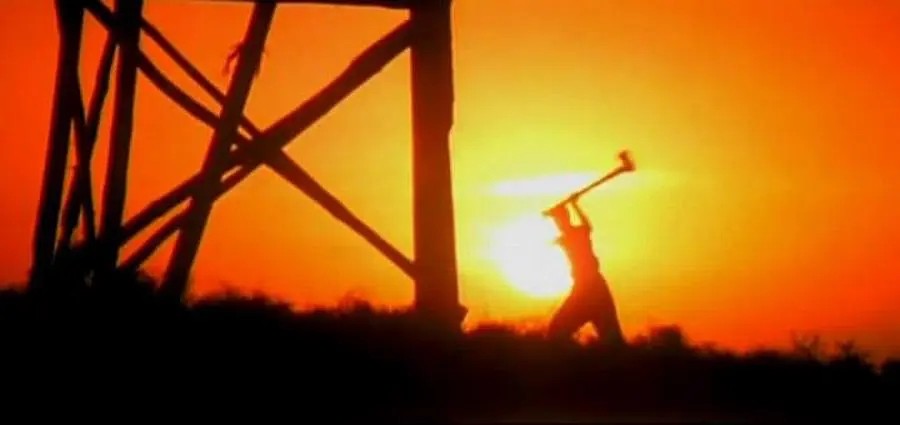 此外,影片还有大量的意象表达作为抗日主题的精神映照。影片中有一老叟拿锄头砍高塔的情节,这个情节游离于主线叙事之外却又重复出现在影片的过程中,这一画面也成为中国人民在抗日战争中做出不懈努力的诗意影射。