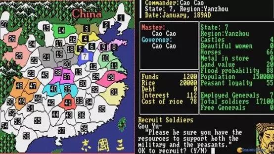 《三国志1》发行于1985年12月13日,当时少见的PC平台游戏,在当时制作精良,可谓一炮而红