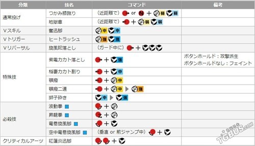 招式名伤害眩晕取消属性紫電カカト落とし100150VT─稲妻カカト割り70100VT中段顎撥5080必 CA VS VT─顎撥二連50+8080+80必 CA VS VT付加追击 TC獅子砕き60+70100+100必 CA VS VT击飞 TC