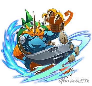 由海狮兽进化而成,能够双腿步行的力量型数码兽,最强的武器是那个数码合金所制的雷神之锤。