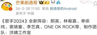 - 《歌手2024》嘉宾阵容被曝 这期待值一整个拉满了!