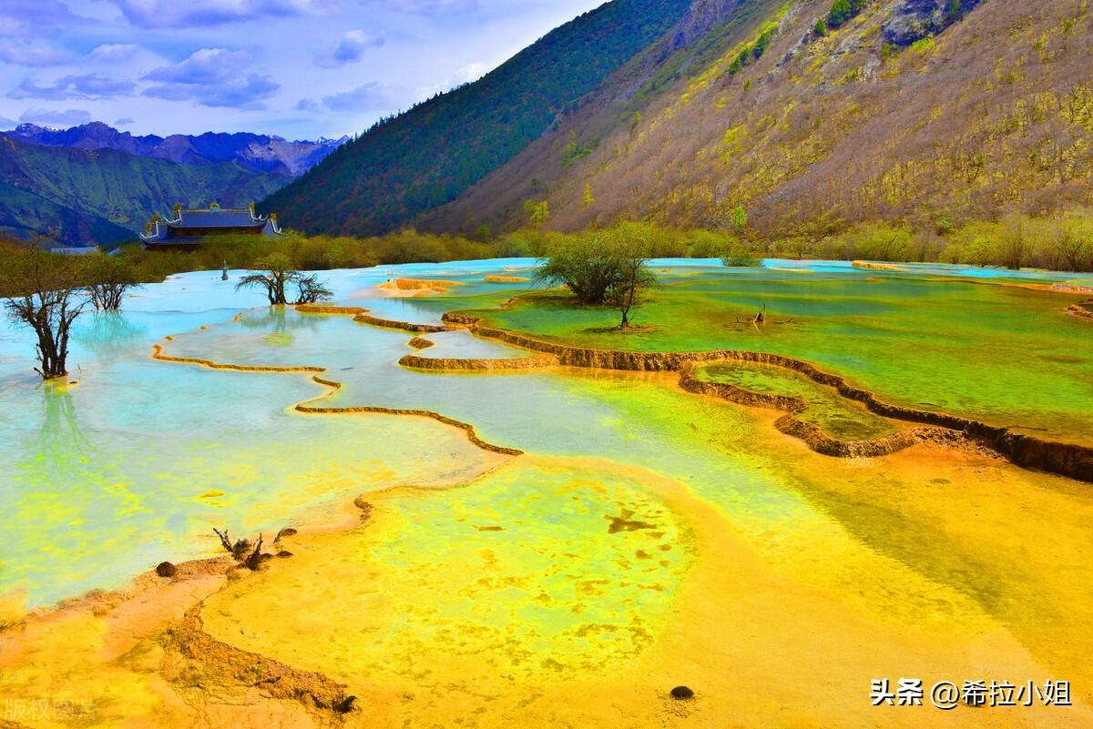 黄龙与九寨沟仅一山之隔,但很神奇的是沟底的岩石,光滑晶莹,顺着山沟曲折蜿蜒,就像一条黄龙盘旋而上。