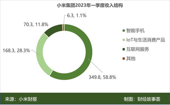 担当主力的智能手机业务,在 2023 年一季度贡献了 58.8% 的营收;其次是 IoT 与生活消费产品与互联网服务,收入分别占比 28.3% 和 11.8%。
