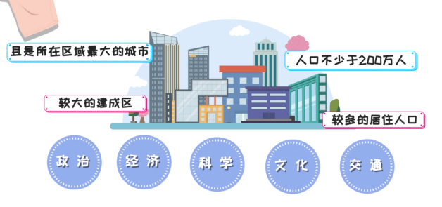 直辖市往往有较大的建成区、较多的居住人口,且在全国的政治、经济、科学、文化、交通等方面具有重要地位。人口不少于200万人,且是所在区域最大的城市,因为密度人口是地区经济发展的基础。