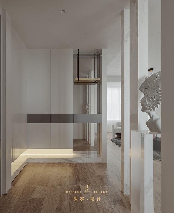 如果你家的面积够大,可以设计入户玄关衣柜+隔断,不仅可以遮挡视线,还可以增加入户的储物空间。