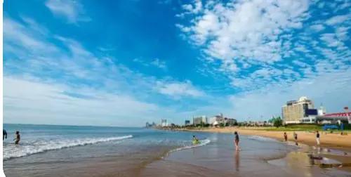 这里的沙细、滩缓、水清、潮平;这里以“沙漠与大海的吻痕”而驰名,不仅能看海,还有滑沙的地方;碧水蓝天,沙质松软,色黄如金,故称黄金海岸。