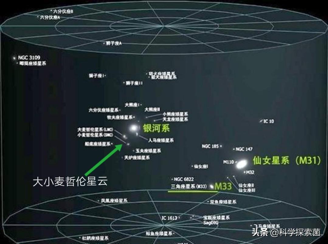 仙女座星系距离地球大约250万光年,三角座星系距离地球大约300万光年,它是仙女座星系的一个伴星系。大小麦哲伦星云,它们是银河系的两个伴星系,小的距离地球20万光年,大的距离地球16万光年。