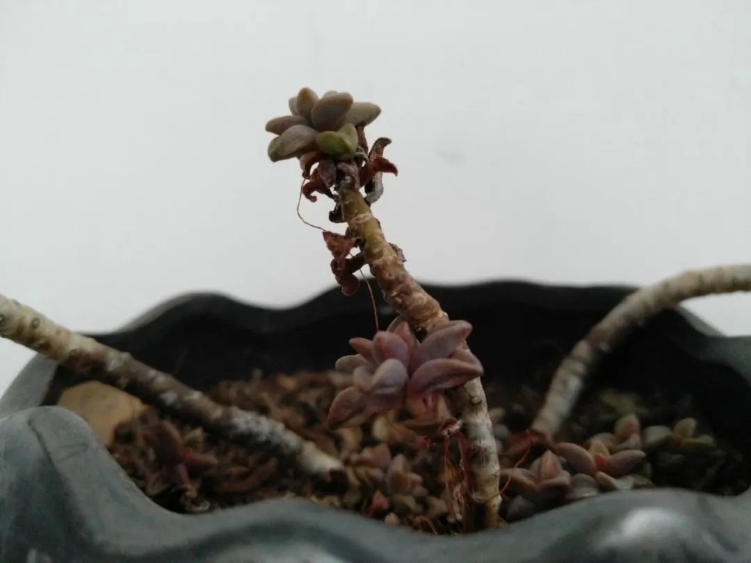 养护过程中为了多肉出状态,常常采取控水的方式,诱导植株应激状态,从而达到植株紧凑叶片饱满甚至颜色艳丽的状态。但过分的控水也会导致植株缺水引发植株生长不佳,叶片干瘪以及掉叶;有些品种也会因缺水引起茎秆木质化,从而引发掉叶。