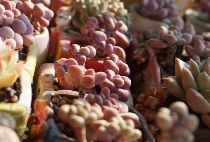 当然随着气温升高,当环境闷热时有些植株也会慢慢进入休眠状态,尤其是夏天大部分植株会有叶耗的情况,多少都会有点掉叶,这种情况不要紧。另外有些品种属于容易掉叶的,比如熊童子及叶片肥厚的桃美人桃蛋等,不小心也会蹭掉或是碰掉叶子,稍微注意即可。