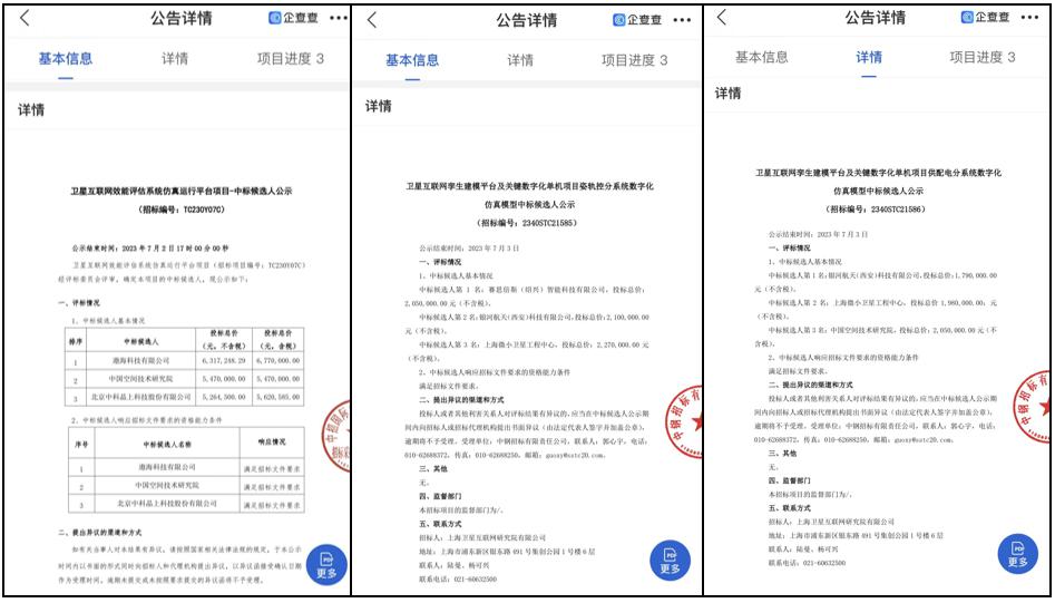 早在 2022 年 10 月,中国版星链的卫星相关的招标工作已经完成。相关配套生产的招标一直在进行中,根据企查查消息,7 月初,星网公司还公示了部分与低轨卫星星座相关的中标项目。