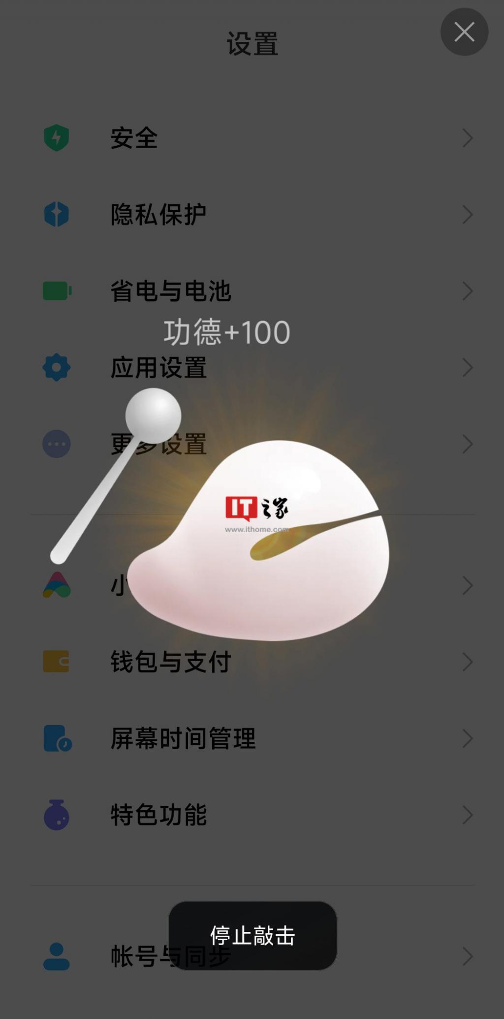 IT 之家测试,用户只需要对小爱同学说 " 敲木鱼 ",就可以打开该功能,点击 " 电子木鱼 " 图案即可敲击。
