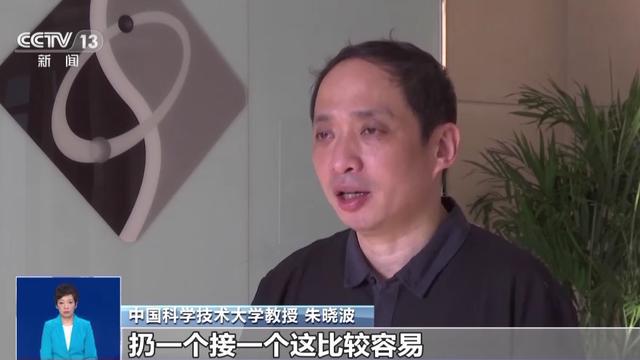 中国科学技术大学教授 朱晓波:我们看过耍杂技的,他在天上扔飞盘,扔一个接一个这比较容易,扔两个一起接就稍微难一点,扔三个就更难了。原来只能扔二十几个,这已经相当相当难了,因为国际社会学术界为这个已经努力了很多很多年了。从 2000 年开始到我们这个成果发布以前,最多也就做到 24 个,现在我们一下子可以接 51 个飞盘,而且都接得稳稳的。