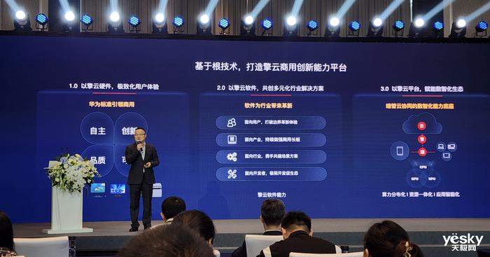 在面向未来的第三阶段 " 以擎云平台,赋能数智化生态 " 中,华为将基于前期研发创新、行业生态基础,打造端管云芯协同下的算力底座。通过以云助端,打破现有单机终端能力上限,达到产品竞争力的飞跃 ; 通过 OpenHarmony 通用接口更快速、准确地满足各大行业数字化需求,最大化提升政企办公效率,全面释放数字生产力。