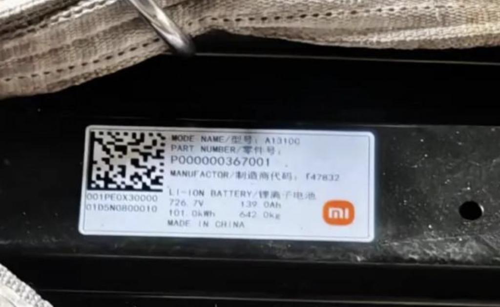 日前,有博主在社交平台上晒图曝光疑似小米汽车铭牌的电池包信息。