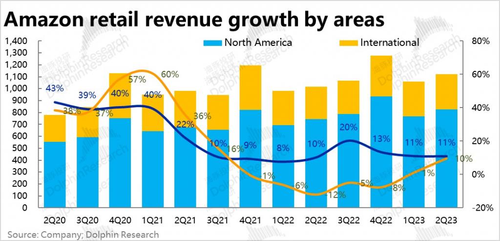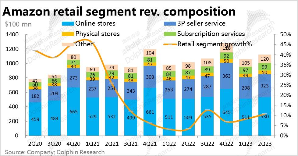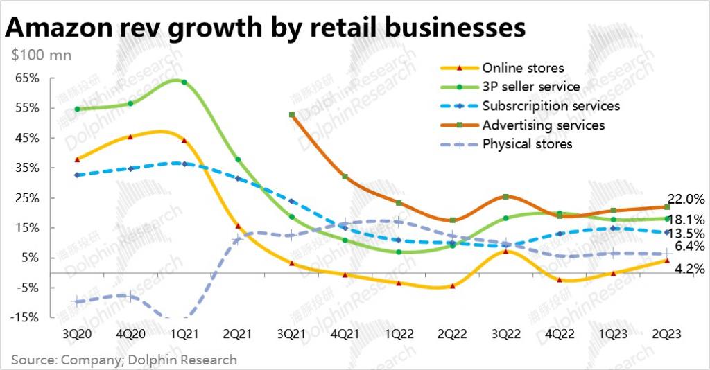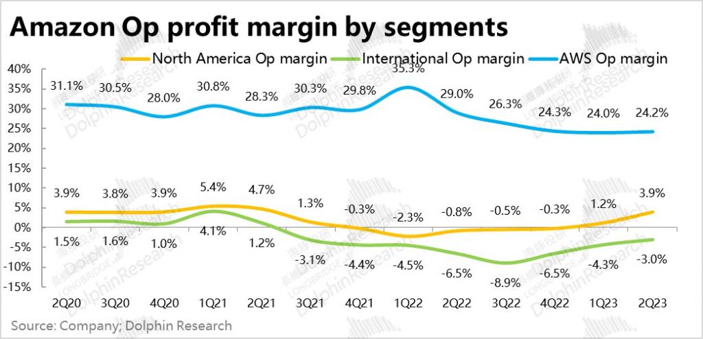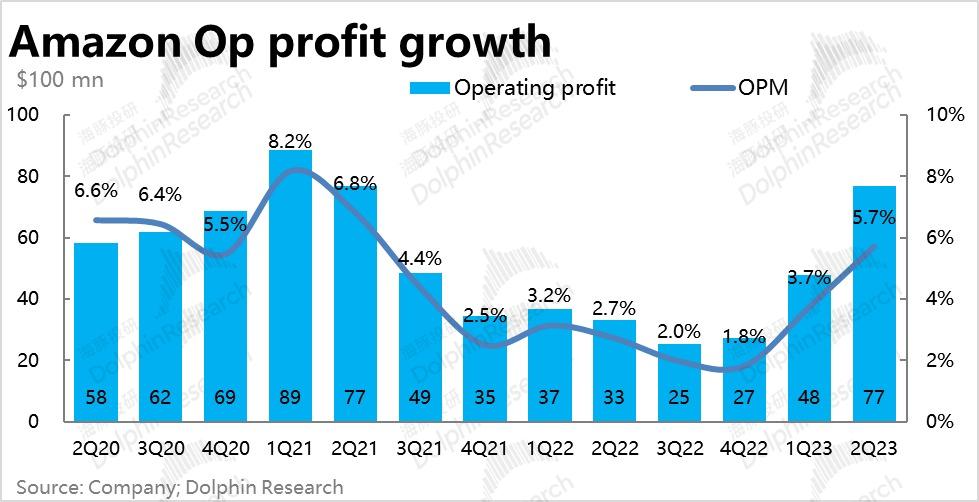 海豚君从一季度起就认为,随着亚马逊大力度裁员并放缓物流、仓储等投入,同时优化配送效率,提升向 3P 收取的物流仓储费用,会扭转先前因过度投入导致的规模不经济,快速重回盈利。而本季财报也验证了海豚君的观点。