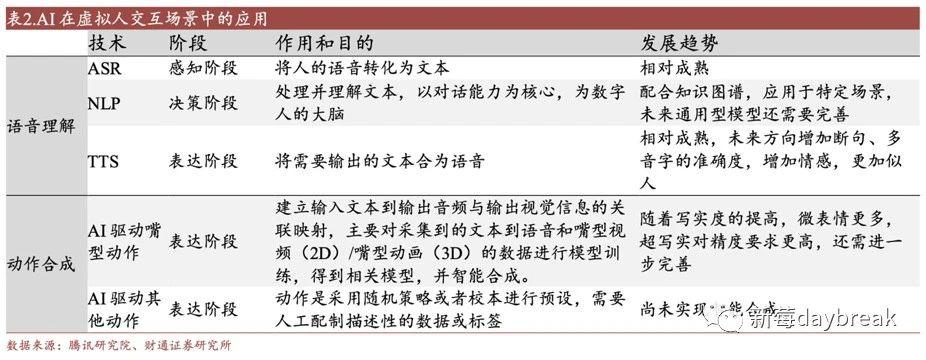 前者依靠对真人的深度采集完成,包括动作捕捉、面部表情捕捉、音视频合成等等,再绑定到虚拟人上。后者则是通过深度学习、小样本学习、自然语言处理、神经网络渲染等技术手段,比如输入演讲稿或者语音,AI 模型就能自动输出肢体动作、面部表情、声音。