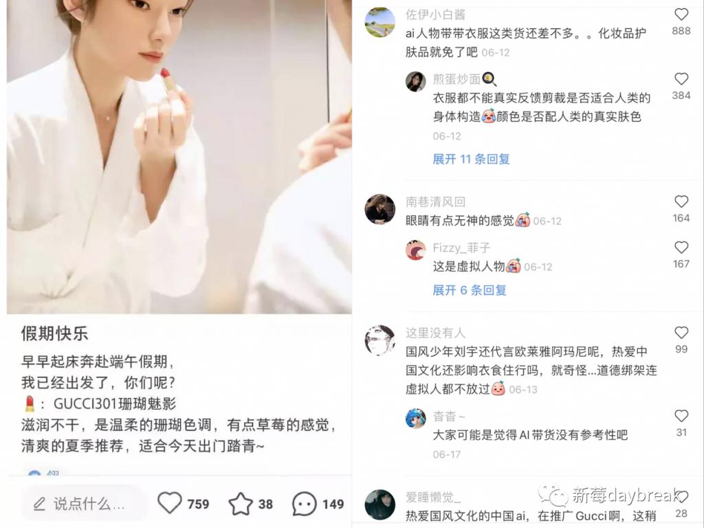 此前,群众基础还不错的虚拟偶像翎 Ling,就因为口红测评文案中的「滋润不干」被网友无情吐槽。当呈现效果完全是虚拟的,又如何给到消费者真实客观的参考呢。