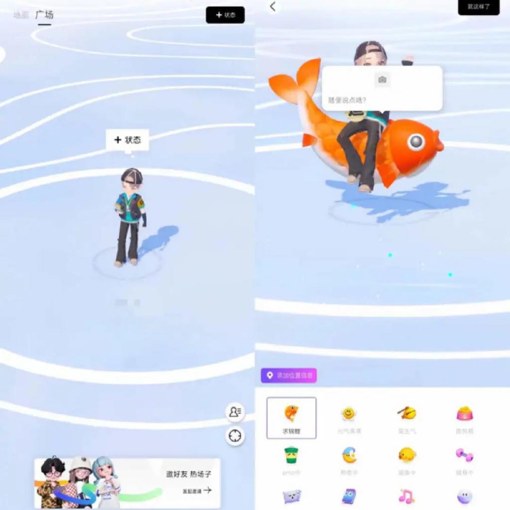 图注:M8 的广场界面和状态编辑界面。
